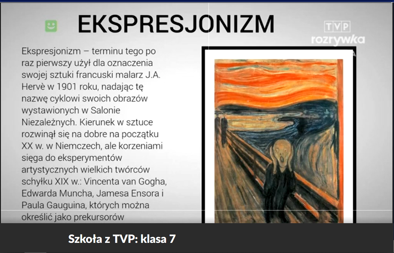 Wraz ze wschodem słońca pewnego poniedziałku, dziewiętnastego dnia uczniowskiej kwarantanny, część mojej duszy na wieki oddana sztuce, dostała zawału. Ataku histerii. Paniki. Bo tego, co zobaczyłam, kiedy znalazłam opublikowany odcinek „Szkoły z TVP” z Plastyki dla klas 7, nie powinien widzieć NIKT, a na pewno nie młodzi ludzie. Ale usiadłam i postanowiłam przetrwać te tortury, żebyście wy nie musieli i żeby naprostować parę (wszystkie prawie) rzeczy. W każdym razie, wiem już przynajmniej, skąd bierze się tak niski poziom wiedzy o sztuce w Polsce.