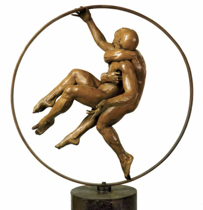 Jorge Marín to meksykański artysta rzeźbiarz tworzący w brązie niesamowite rzeźby zamaskowanych aniołów-gimnastyków. Wsparte zazwyczaj tylko na jednym punkcie igrają z zasadami grawitacji, mając w sobie lekkość, której nigdy nie spodziewalibyśmy się zobaczyć w tak ciężkim materiale. Maski, które stały się nieodłącznym wręcz elementem jego prac, są próbą depersonalizacji postaci, które rzeźbi, pozostawiając odbiorcy możliwość utożsamienia się z pełnymi gracji figurami i odpłynięcia na chwile myślami do innego świata, do własnego teatru, którego każdy z nas potrzbuje.